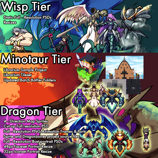 Available download features a donwload link to folders containing the content listed for each of the tiers in the cover image for the featured releases!